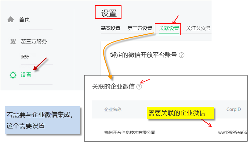 4、設(shè)置(可選,若企業(yè)微信集成的時(shí)候需要):