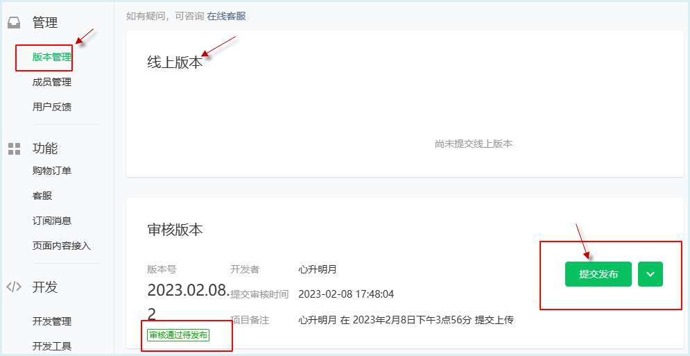 4)等待微信的測(cè)試審核,通過(guò)后,小程序才能發(fā)布