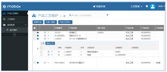 Mobox工藝管理系統界面