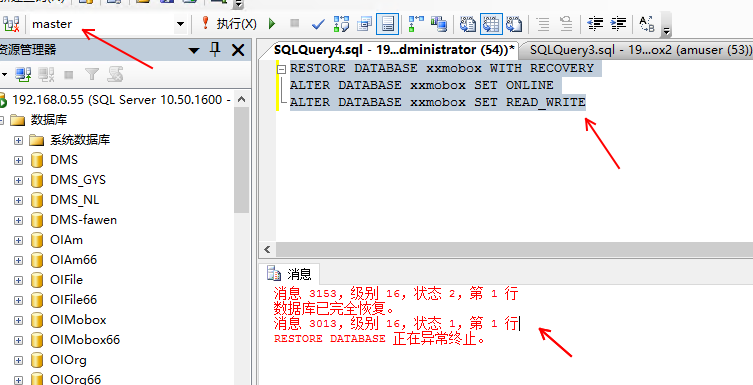 今天遇到一個非常詭異的現象,xxmobox數據庫還原后提示成功,但這個數據庫無法被dns服務鏈接。經過分析發現 xxmobox數據庫狀態:關閉,正常
