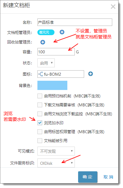 新增文檔柜 點擊后,需要注意的參數設置