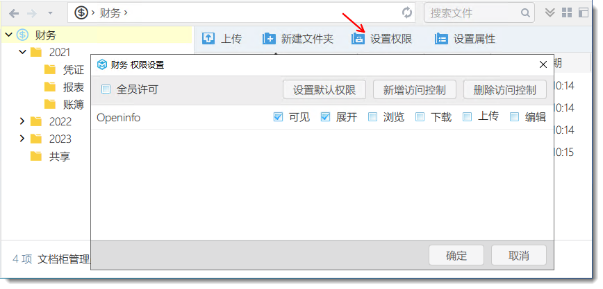 1)設置文檔柜的文檔基礎權限