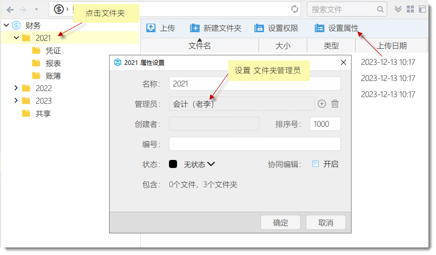2)創建(文件夾),并設置可設置文件夾管理員