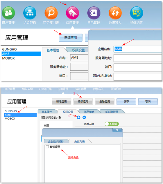 AM系統(tǒng)權限設置 2024/03/14 分類:產品中心 產品手冊 視頻中心 663 AM是一套企業(yè)即時通訊系統(tǒng),作為企業(yè)應用其很核心的功能是“可控” 我們可以給用戶設置其相關的權限, 設置如下 權限管理 在人員管理里面增加角色 對AM應用設置權限 之后設置這個角色的權限 查看視頻 http://m.008y.cn/wp-content/uploads/2024/03/orgqx.mp4 標簽:手冊視頻 上一篇: 任務跟蹤管理實現(xiàn)過程 下一篇: 單位組織機構創(chuàng)建過程