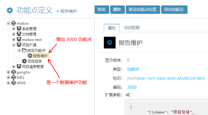 - 顯示頁簽 ,選擇了前面定義過的 3000功能點 “報告維護”