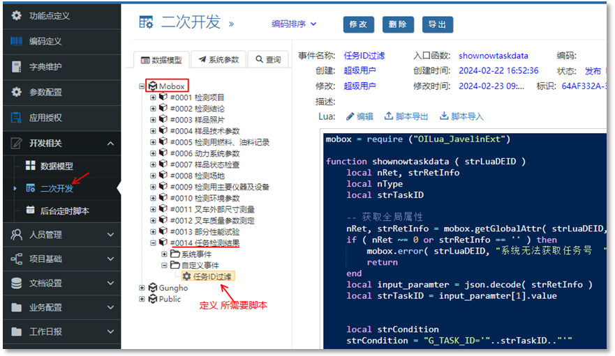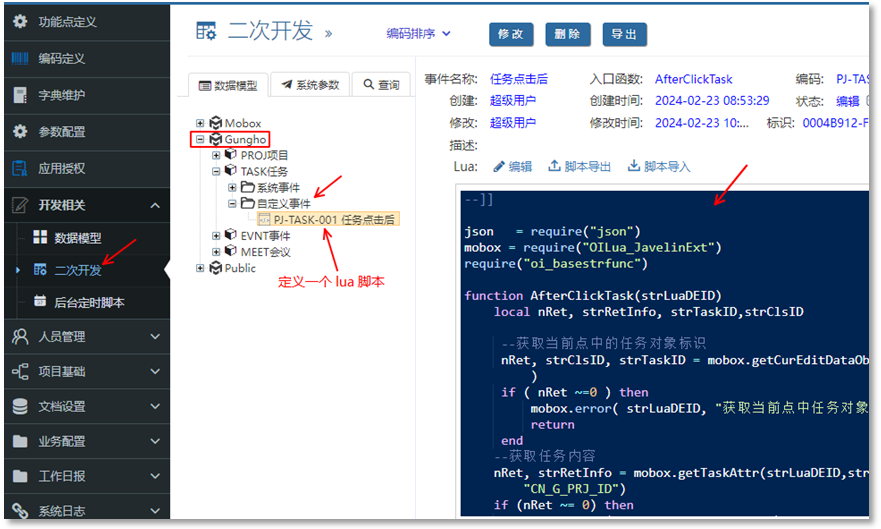 開發(fā)一個(gè)腳本:任務(wù)點(diǎn)擊后 腳本 (目的是 任務(wù)點(diǎn)擊后能將 prj_id,task_id 等設(shè)置到全局變量)