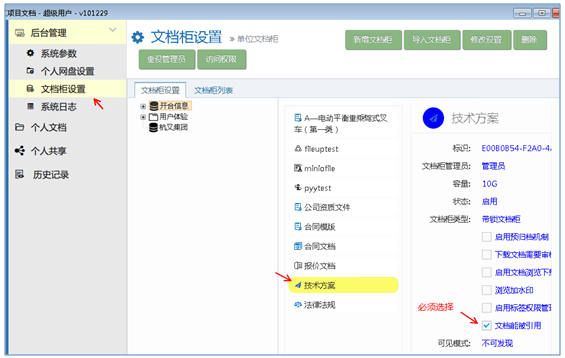 文檔柜創(chuàng)建后,【文檔能被引用】選項(xiàng)必須打勾