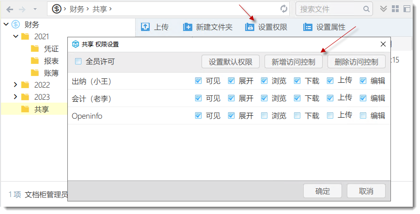 有上傳權(quán)限:員工可以向當(dāng)前“目錄”上傳文件